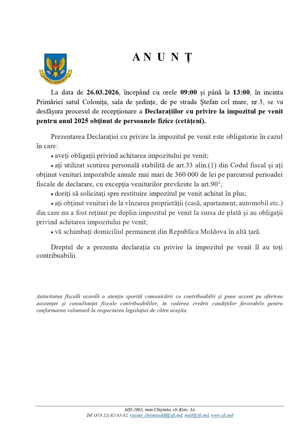 Spre Atenția Tuturor Locuitorilor Din Satul Colonița!