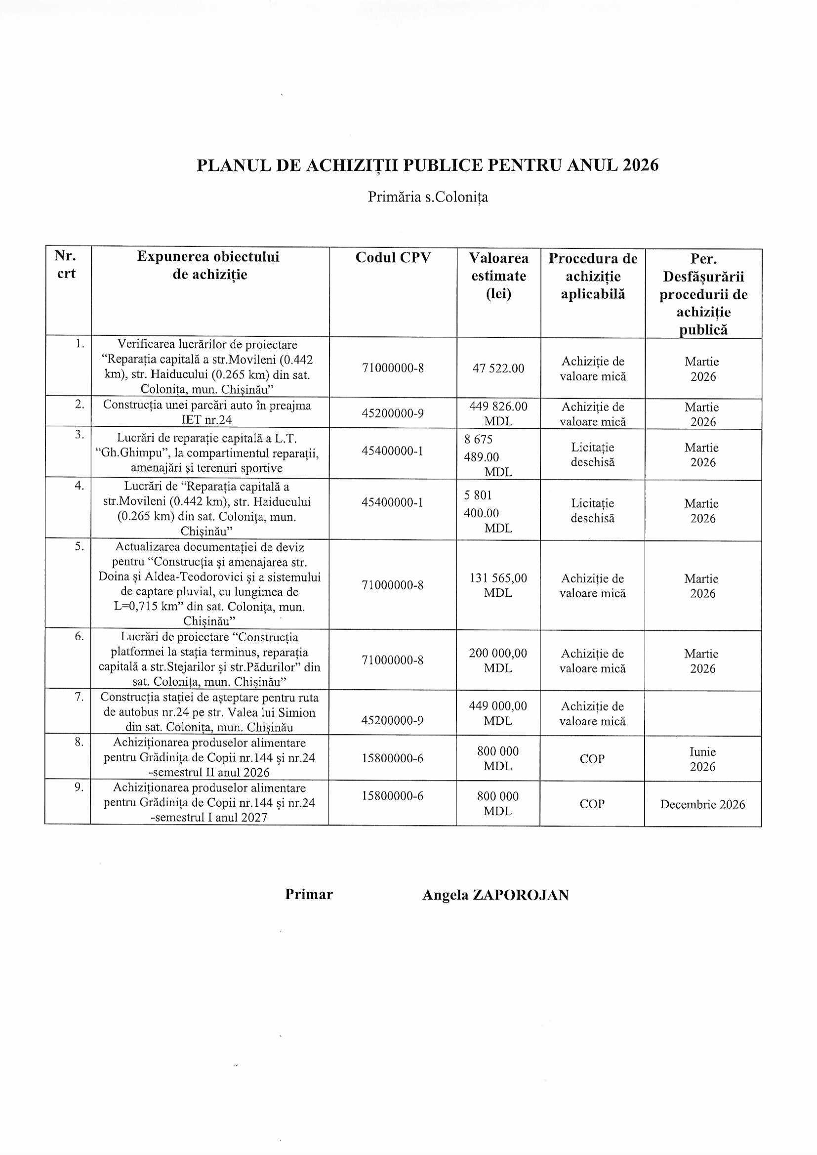 Planul de achiziții publice pentru anul 2026 a primărie satului Colonița Achiziții Publice Articole INFORMAȚII 12 martie 202612 martie 2026 Distribuie: